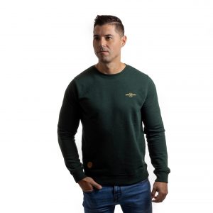 Sudadera de cuello redondo en color menta, confeccionada en algodón orgánico con logo, bordado en el pecho al tono. Parche en la parte inferior derecha y etiqueta decorativa en el puño. Interior French Terry.